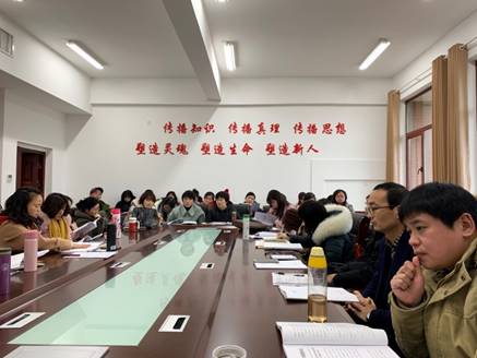 李雪蓉主任代表部门领导和行政人员向全体文化老师送出新春祝福,隆重介绍了通过公开招聘新加盟部门的老师,对新学期的工作重点作了进一步的强调和要求。她指出,公共教学部要率先做好学分制改革的试点,为秋季学期全面推行开好端头,积累经验;各位教师要主动适应学分制改革带来的变化,积极调整教学方式和课堂管理模式,认真思考在学分制下如何因材施教及管控好混合课堂。接着重点就如何在教师职业能力认证中彰显公共课教师的存在感和价值提出了要求:要切实贯彻落实课比天大理念,教好、教活所授课程,增强学生获得感;要求加强教研科研,务使自己和部门在论文发表课题申报中实现大跃升;要积极参加校内外各种教师职业能力竞赛比武,以赛促教,提高在业界话语权和影响力;要加强进修学习和学历职称提升,不断提高自身的业务能力。再次,她要求全体文化老师积极投身于学院的校园文化建设,依托所辖三大学生社团,开展好具有知识含量和部门特色的文体社团活动,发挥文化老师在校园文化建设中的独到作用。最后,李主任希望老师们把教书与育人结合起来,把育人工作放心上,落实处,不但要成为经师,还要成为学生成长的引路人。