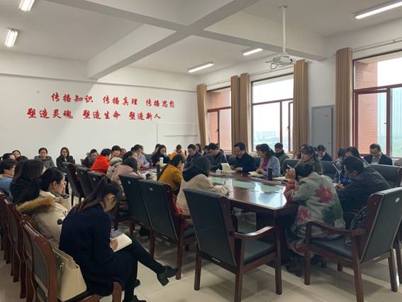 2019年3月8日中午13:30,公共教学部(思政课部)在崇艺楼419举行部门建设发展研讨会,学院党委书记王章华、院长张勇参加了会议并作重要讲话和工作指导;教务处处长曹志超、副处长周新娟列席并认真倾听了公共课教师的发言。会议由李雪蓉主任主持。