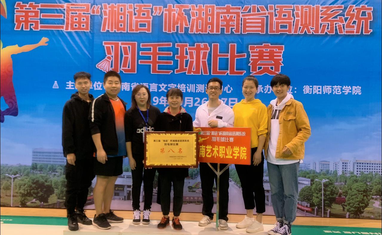10月26日至27日,由湖南省语言文字培训测试中心举办的第三届“湘语”杯湖南省语委系统羽毛球比赛在衡阳师范大学落下帷幕。我校代表队在比赛中发扬顽强拼搏精神,获全省第八名的好成绩。