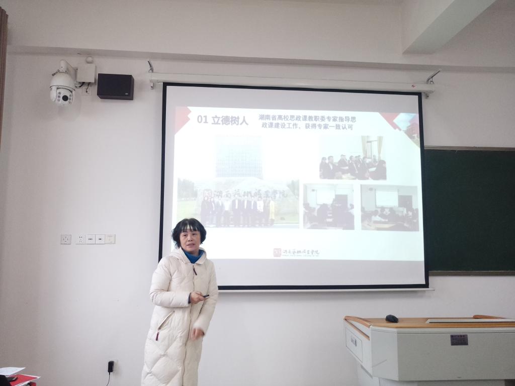 王含光主任首先为在教师职业能力大赛中的获奖选手进行了颁奖,她指出2019年公共教学部(思政课部)作为立德树人的先行者、基础教学的坚守者、教研教改的先锋队和淳朴乐观的湖艺人在立德树人、基础教学、三教改革等活动上成绩斐然,并代表公共教学部(思政课部)梳理、总结了本部门一年来的工作要点及成效:一是进行了专题化、信息化教学,发挥课堂育人主渠道,探索多种实践教学方式,加深学生的理论自信,在湖南省高校思政课教职委专家指导思政课建设工作中,获得专家一致认可;二是完成了《毛概》《思修》《大学语文》《大学英语》《信息技术》《体育与健康》《心理健康教育》七门课程的课标修订工作,我部门学分制改革推进率达到100%,开展了四次教学检查,促进了教风、学风的提升。三是全年部门共组织完成12次全体教师集中学习,同时按照育训结合、长短结合、内外结合的要求,2019年度通过部门推荐外出培训31人次共60次主题培训。四是鼓励教师参加市级和市级以上的教学能力比赛,以比赛促进教师教学方法、教学模式、教学评价的创新与改革,我部教师2019年度获得市级及市级以上奖项共计25项。