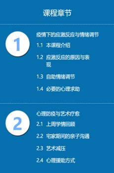 一场新冠肺炎疫情的来临,让我们都感到了恐慌、焦虑,这是特殊情况下的正常心理反应。但如果反应过度,恐慌和焦虑持续存在,则会产生不良的后果,导致不理智的行为。面对这种心理问题,这两周心理课教学以疫情下常见的心理问题和调节方法为主题,覆盖了心理应激反应的原因及表现、情绪自助及调节策略、心理求助途径、居家家庭关系指南、艺术疗愈与放松等内容。我们利用网络平台整合了丰富多样的教学素材,包括教师录播视频音频、网络视频音频、问卷调查、测试作业等,发挥了线上教学的优势。