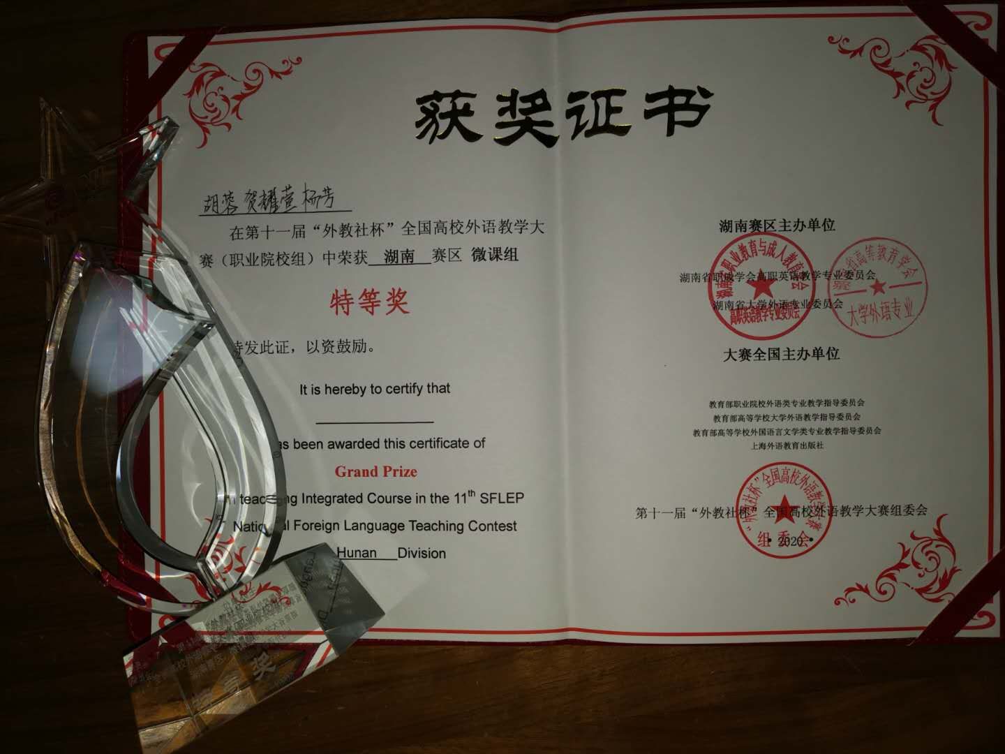 我院教师荣获第十一届“外教社杯”全国高校外语教学大赛湖南省微课比赛特等奖