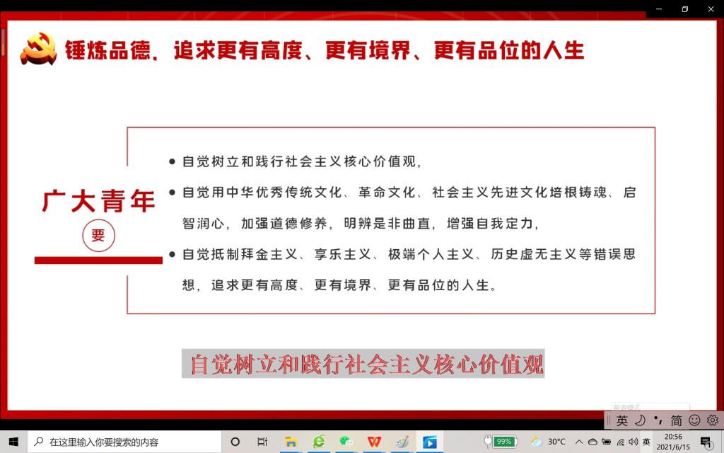 2021年是中国共产党成立100周年,是“十四五”开局之年。为了深入贯彻落实习近平总书记关于深化思想政治理论课改革创新和加强“四史”教育的重要指示批示精神,全面落实习近平总书记在党史学习教育动员大会上的重要讲话精神,近日,学院思政课部组织开展了以“百年辉煌路·奋斗正当时”为主题的全校大学生讲思政课比赛活动。