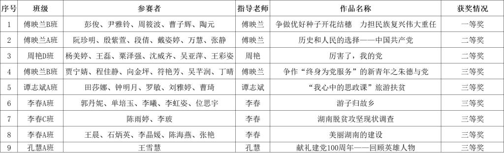 活动中,同学们踊跃报名,积极参与。在思政课教师的指导下,同学们组建团队,围绕思政课课程中的有关章节或专题进行教学设计、以“百年辉煌路·奋斗正当时”为主题开展教学,并录制了相关的讲课视频。最后,经过班级初赛和学院决赛两个环节,公平选出一等奖1名、二等奖2名、三等奖6名。其中,一等奖作品将被推荐参加省教育厅的作品遴选及相关展示活动。