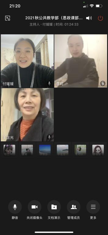 10月21日晚8点,公共教学部(思政课部)在企业微信上通过视频会议的形式召开了本学期第二次教师大会,公共教学部(思政课部)全体教师参加了本次会议,会议由主任助理付媛媛主持。