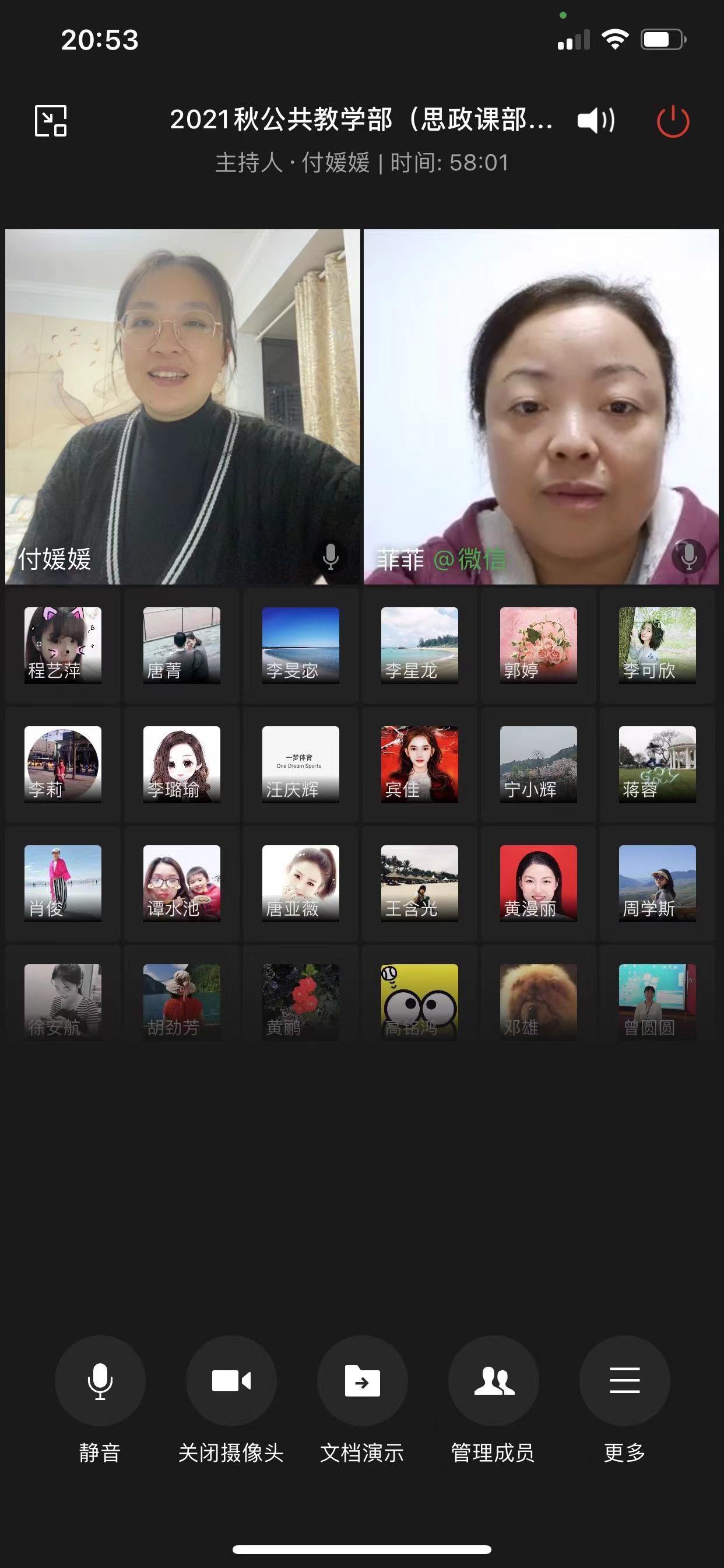 2021年是湖南省师德师风建设年。为进一步推进我部门师德师风建设,提高我校教师师德素养,10月21日晚8点,公共教学部(思政课部)在企业微信上通过视频会议的形式召开了师德师风主题学习会议,公共教学部(思政课部)主任王含光、副主任李莉、主任助理付媛媛出席,会议由付媛媛主持。