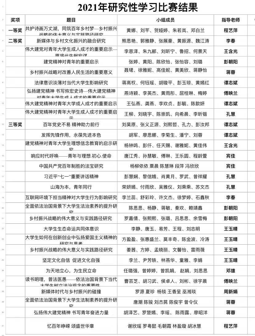 此次研究性学习成果竞赛,增强了大学生的思想政治理论课研究性学习能力和获得感,推进了思想政治理论课建设改革创新,不断探索艺术和思政融合发展的新路径。