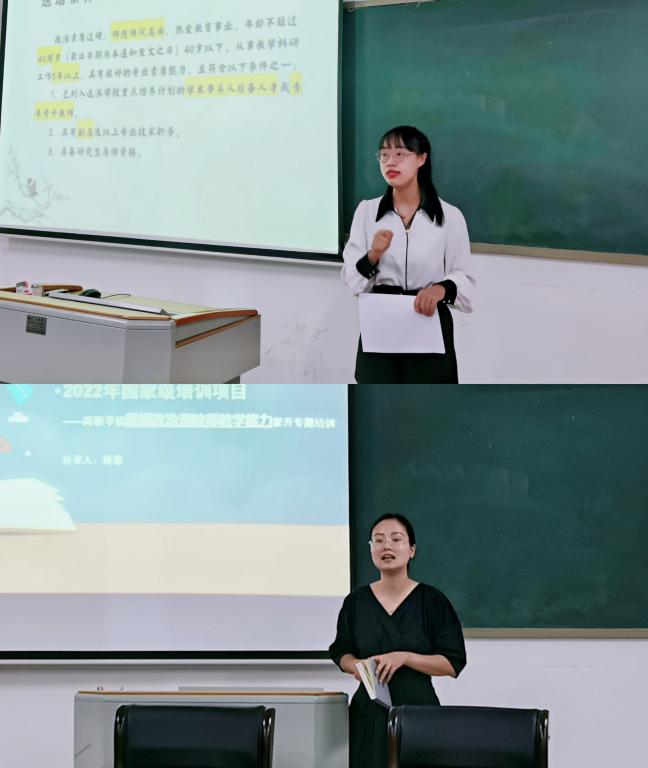 随后,李莉、蒋蓉、郝友、杨芳四位老师依次进行了学习分享,就国内访学、教学竞赛、课程思政等内容与老师们一同交流了宝贵经验。