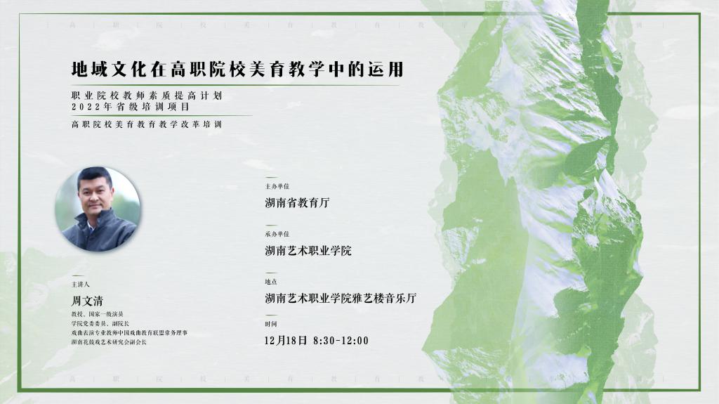 12月18日上午,由公共教学部(体育部)举办的“地域文化在高职院校美育教学中的运用”专题讲座在崇艺楼120报告厅拉开帷幕。讲座由国家一级演员、湖南花鼓戏艺术研究会副会长、伟德victor1946副院长周文清教授主讲。