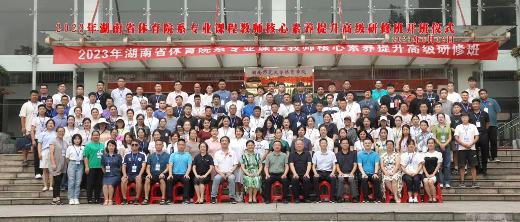 为进一步引导高校体育专业课程教师不断提升道德修养、教学技能、学科素养、研究能力等,由湖南省高等学校师资培训中心主办,湖南师范大学体育承办的2023年湖南省体育院系专业课程教师核心素养提升高级研修班于6月12日在湖南师范大学正式开班,体育教研室组织全体教师参加了本次培训。