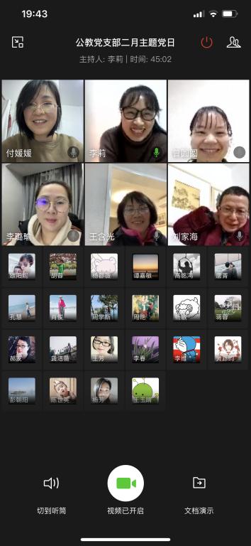 2月18日晚上7:00,伟德国际victor1946在企业微信上召开了视频会议,举行了二月份的专题党日活动。二十九名党员出席了会议(彭鸿舜同志因担任志愿者不能参加),会议由李莉副书记主持,刘家海副院长以联系支部领导和普通党员双重身份与会。