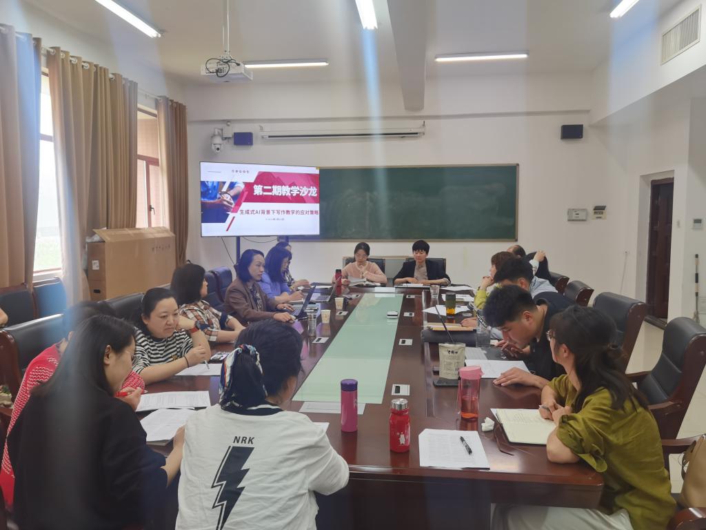 为积极推动人工智能和教育深度融合,促进教育变革创新,4月25日下午,公共教学部(体育部)全体教师大会暨第二期教学沙龙在崇艺楼419会议室如期举行,45位一线教师参与了研讨。本次沙龙研讨主题为“生成式AI背景下写作教学的应对策略”,跟踪前沿、凝聚思想、达成共识、付诸实践是研讨目标。