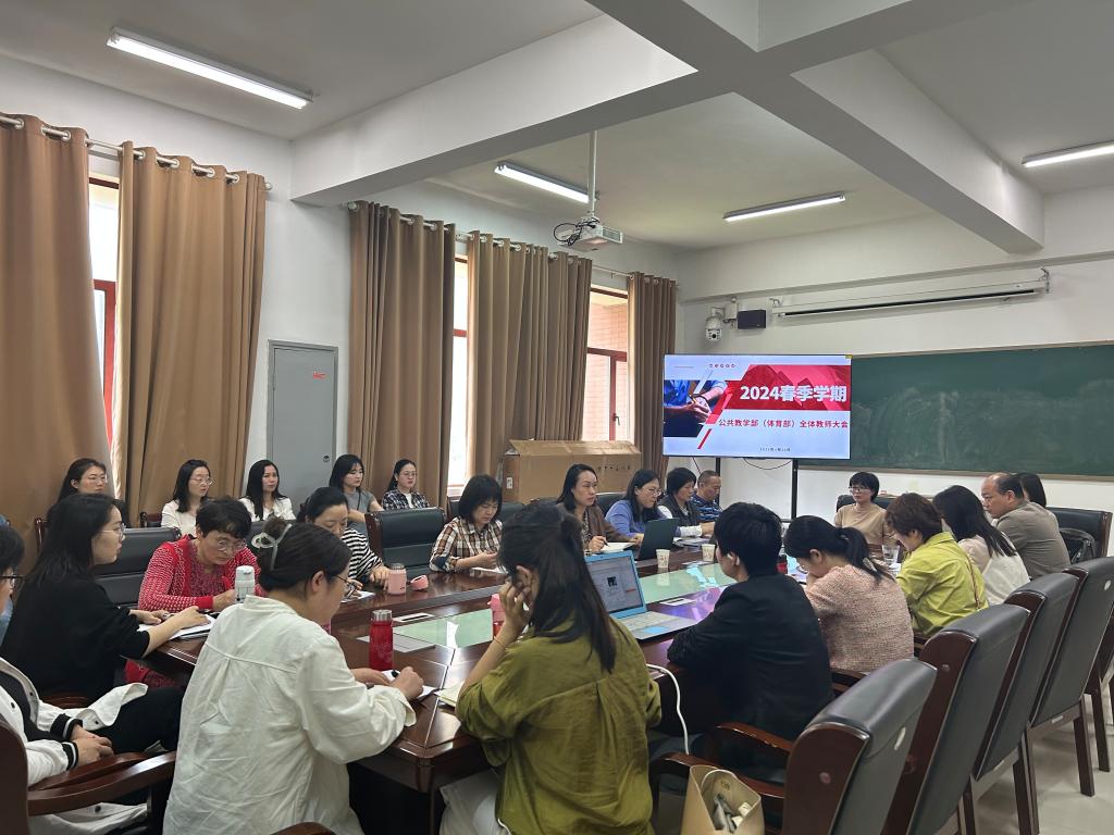 4月24日下午,公共教学部(体育部)4月全体教师大会在崇艺楼419会议室如期召开。会议由副主任李莉主持,部门全体教师出席。