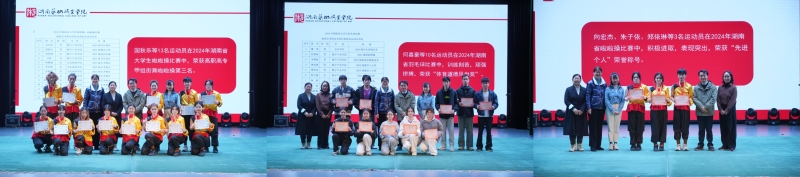 随后,进行湖南省大学生啦啦操、羽毛球比赛颁奖仪式,出席领导们给获得荣誉的运动员颁发获奖证书。教师代表高铭鸿老师向老师们分享了带队参赛的宝贵经验以及对未来学校体育竞赛发展的期望,获奖学生代表向宏杰鼓励新队员参与到体育竞赛中来。