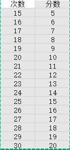健康跑的有效次数要求。30次满分,22次及格,低于15次一律挂科。具体计分方法见下表: